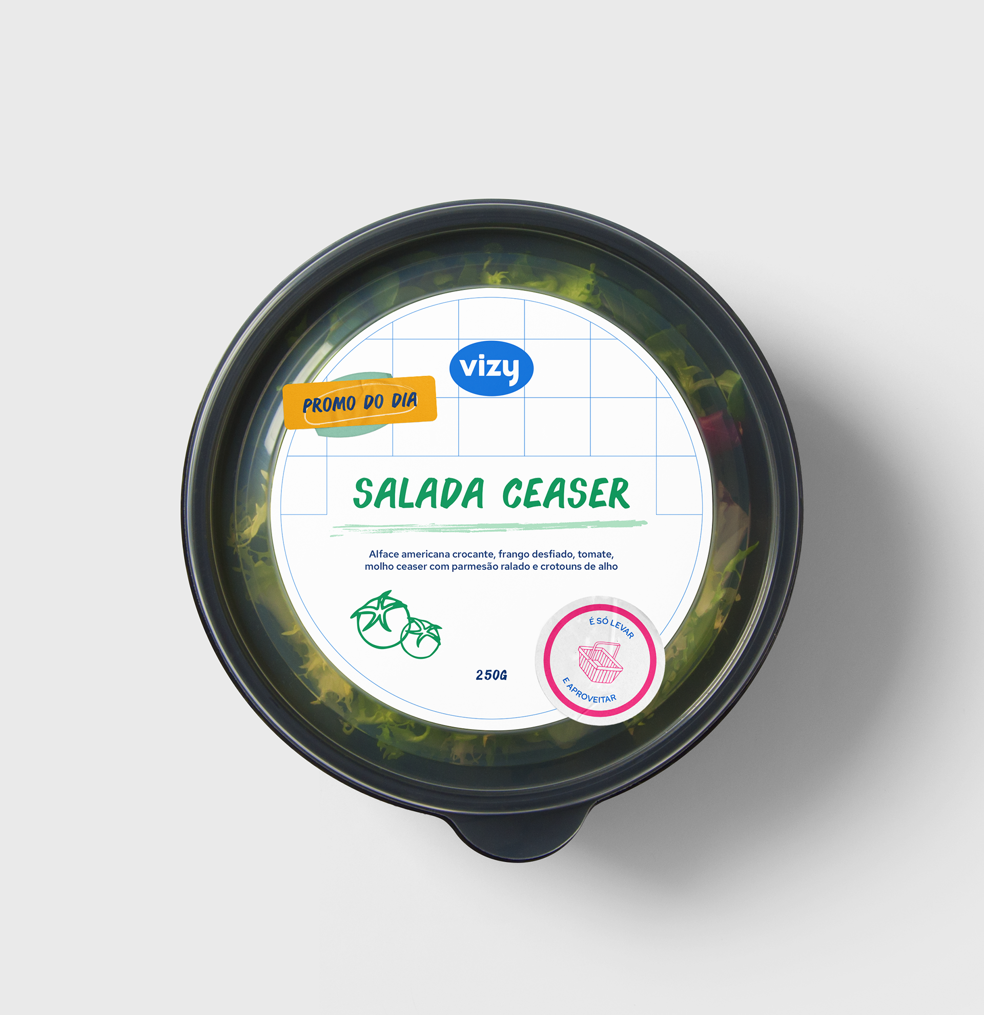 A identidade visual reflete esse conceito trazendo elementos das antigas mercearias de bairro com um toque de modernidade, casando a praticidade das lojas autônomas com proximidade do mercadinho. Sendo assim, trabalhamos com tipos vernaculares para remeter aos cartazes de feira e grid aparentes para remeter aos gradis onde ficam